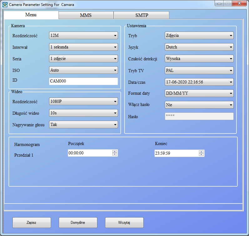 Dla Państwa wygody przygotowaliśmy gotowe pliki Parameter.dat z gotowymi ustawieniami MMS dla najpopularniejszych sieci GSM w Polsce. Po pobraniu jednego z poniższych plików wystarczy wczytać go w programie MMSCONFIG aby dodać swój nr telefonu do odbierania wiadomości SMS, zapisać na dysku. W kolejnym kroku kopiujemy go na kartę pamięci, która będzie używana w fotopułapce i możemy korzystać z urzadzenia.